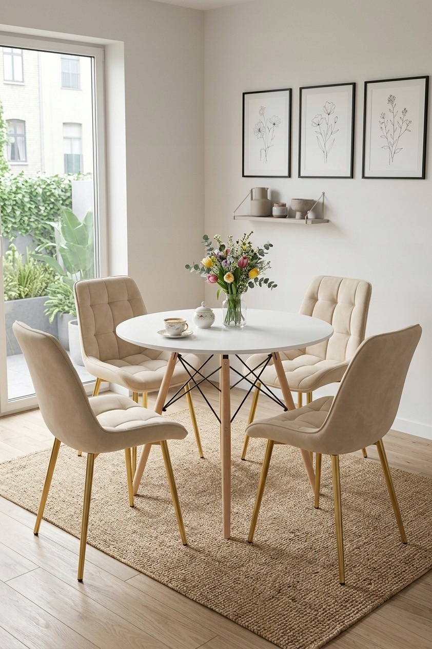 Krzesło BERA - aksamit beż jasny / nogi złote x 2