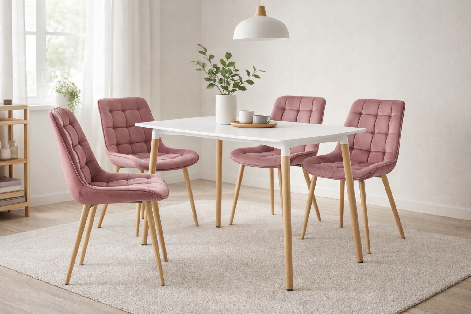 Krzesło BERA - aksamit róż ciemny / nogi dąb x 3