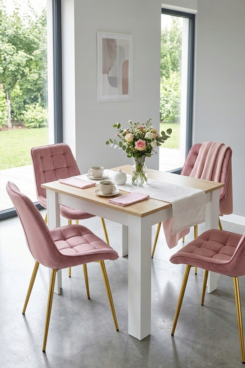 Krzesło BERA - aksamit róż ciemny / nogi złote x 2