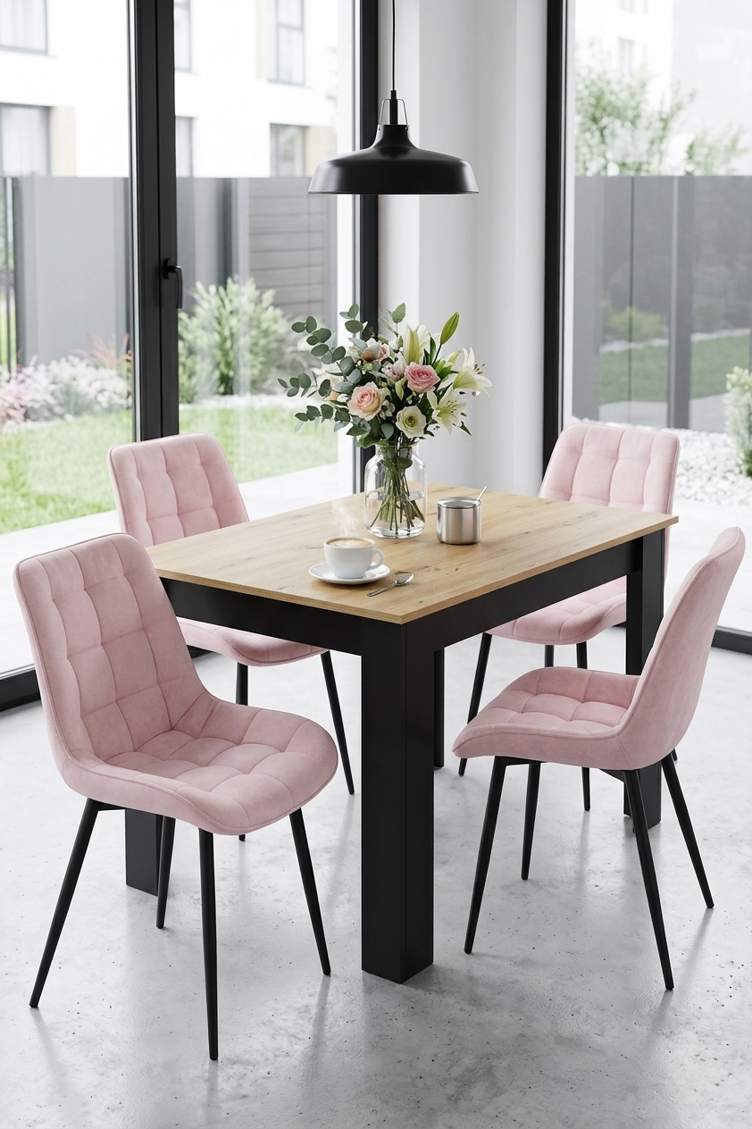 Krzesło BERA - aksamit róż jasny / nogi czarne x 4