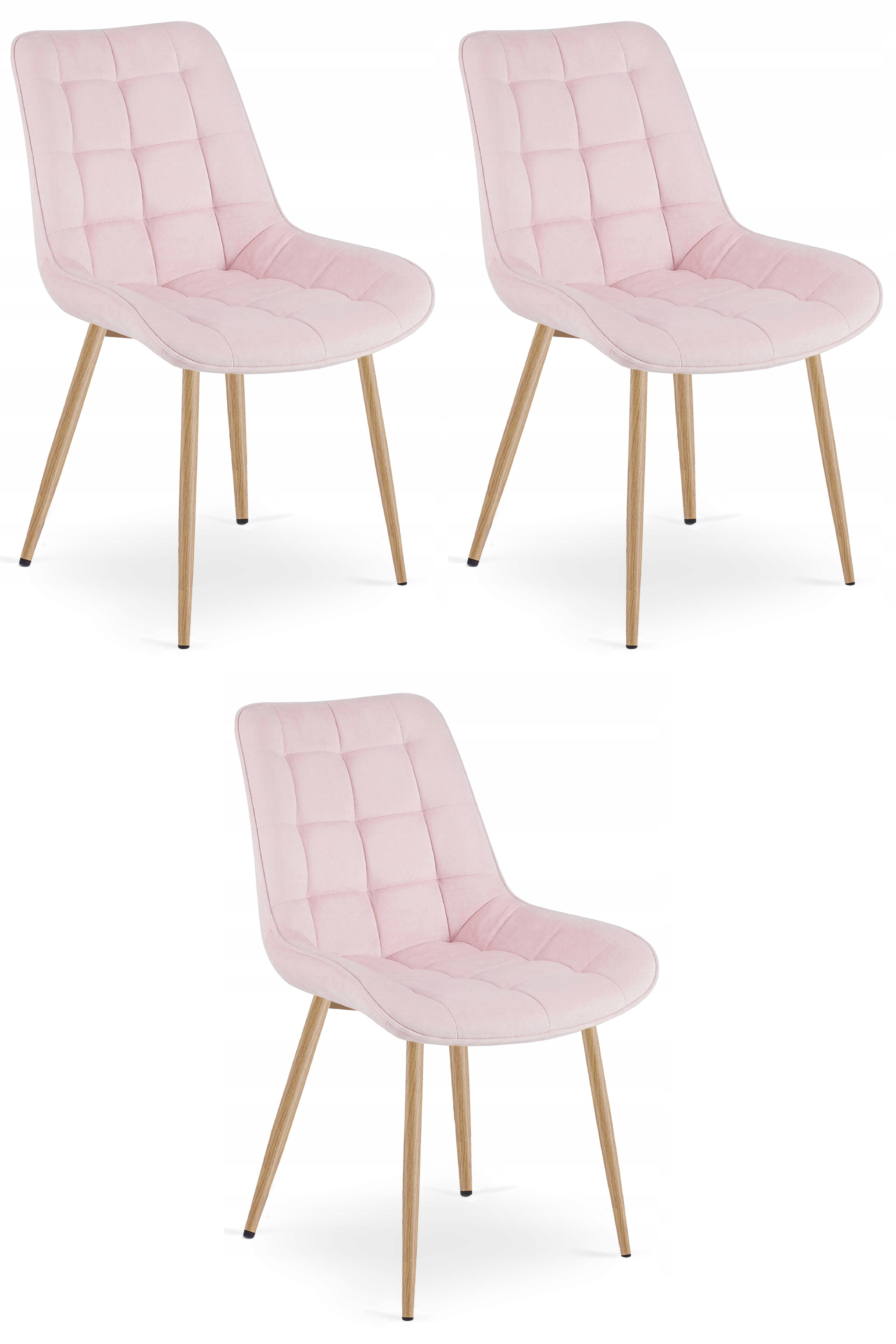 Krzesło BERA - aksamit róż jasny / nogi dąb x 3