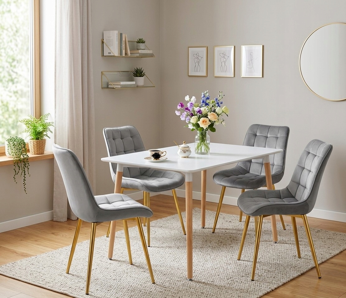 Krzesło BERA - aksamit szary jasny / nogi złote x 4