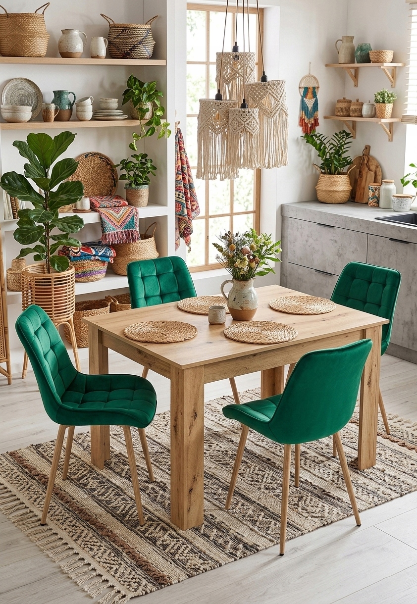 Krzesło BERA - aksamit zieleń / nogi dąb x 4