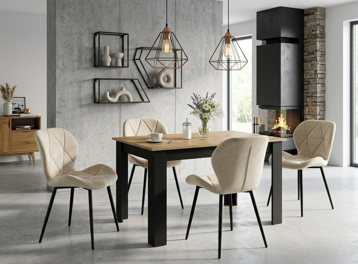 Krzesło MANGO - aksamit beż jasny / nogi czarne x 2