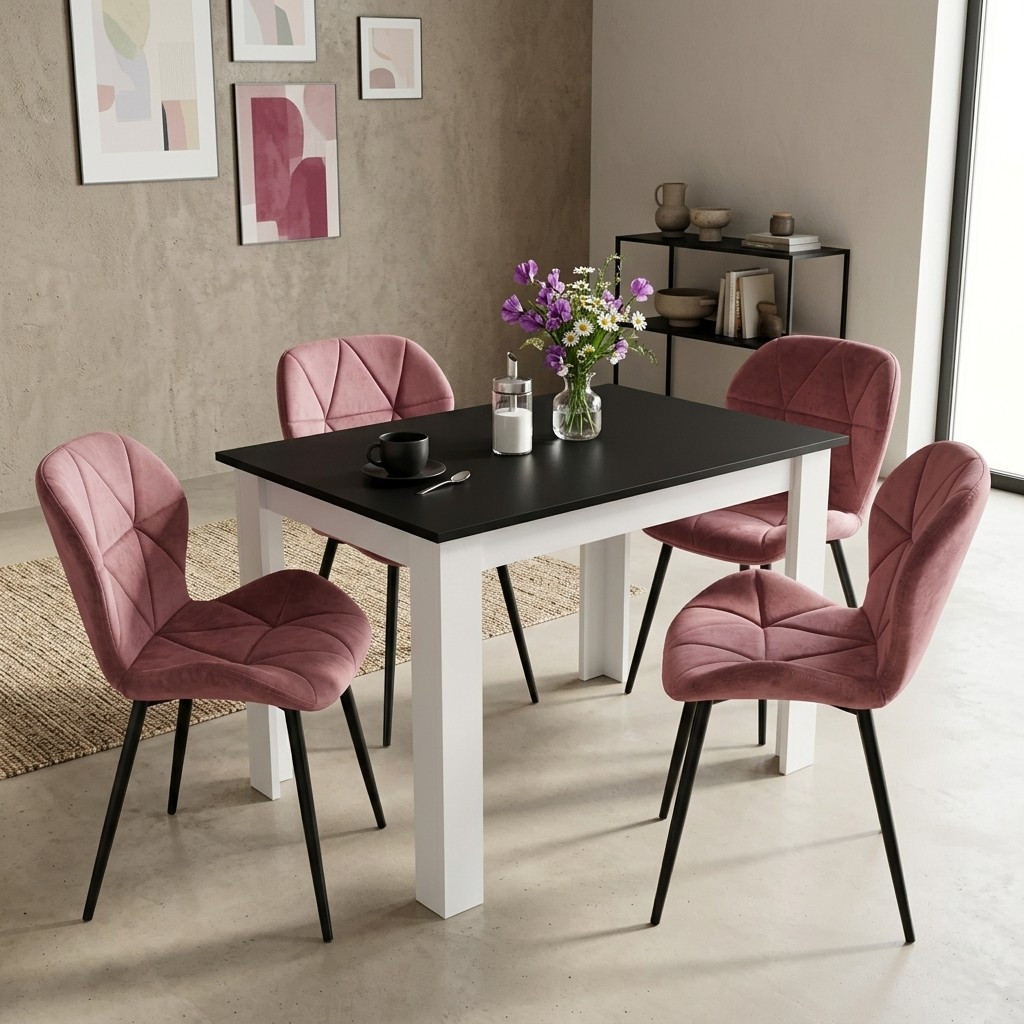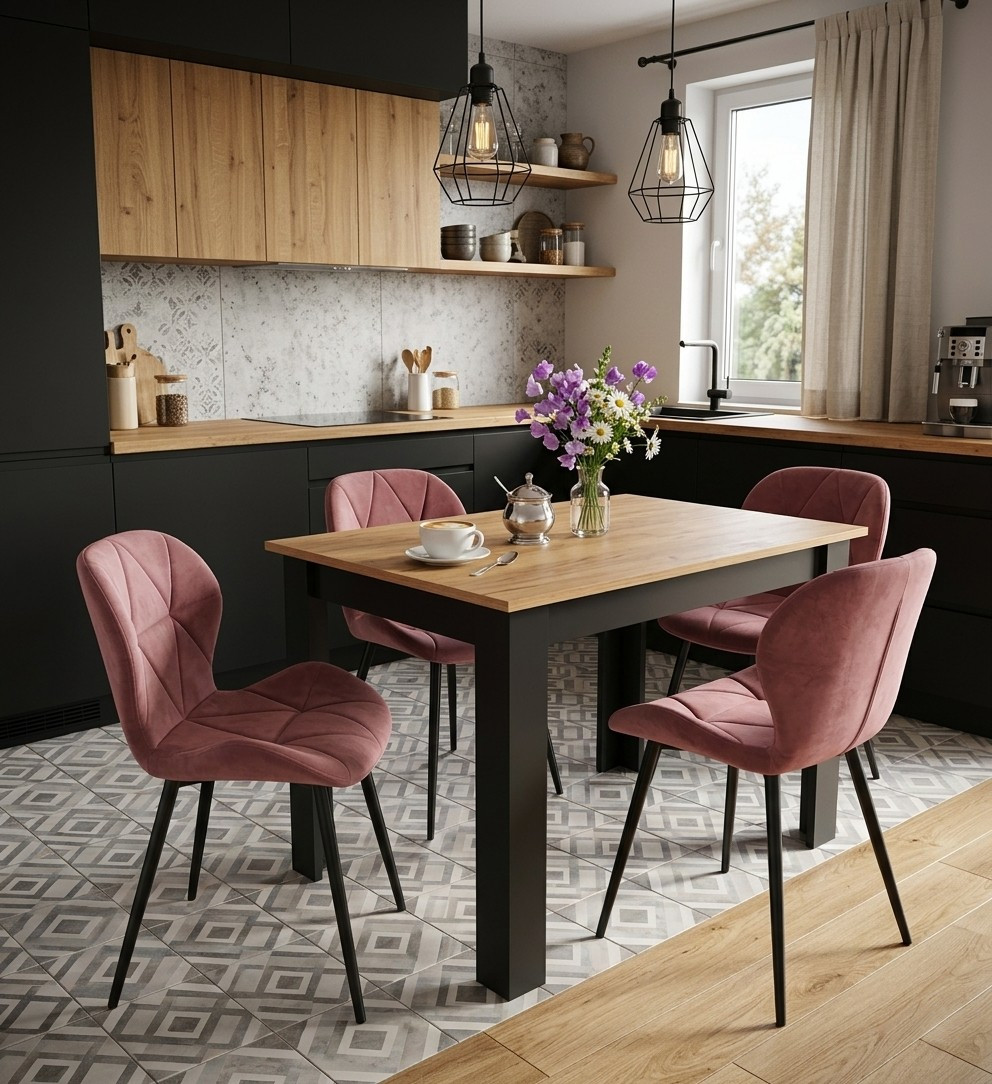 Krzesło MANGO - aksamit róż ciemny / nogi czarne x 2