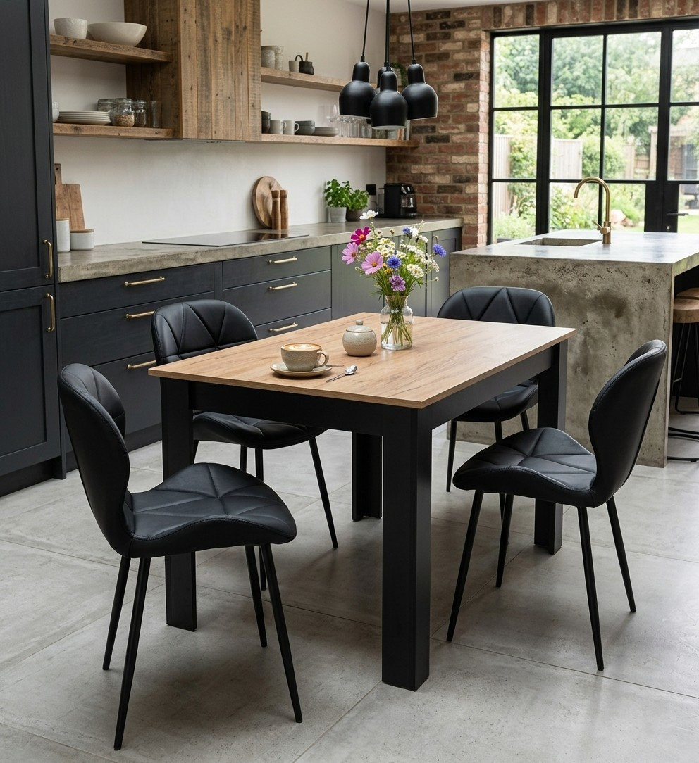 Krzesło MANGO - ekoskóra czarna / nogi czarne x 2