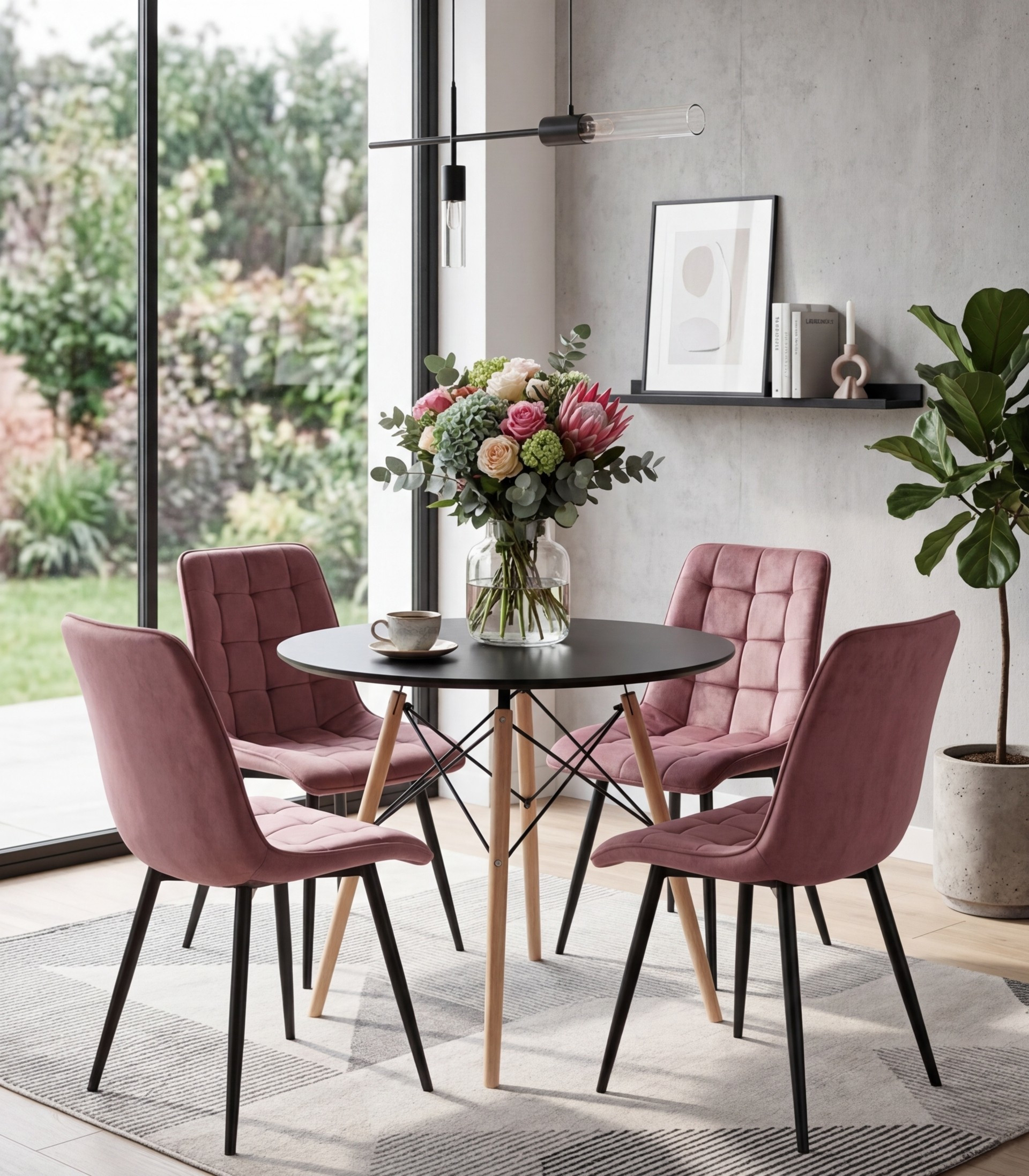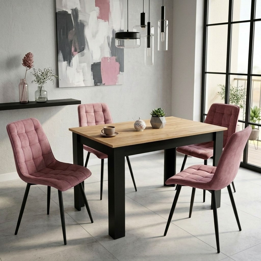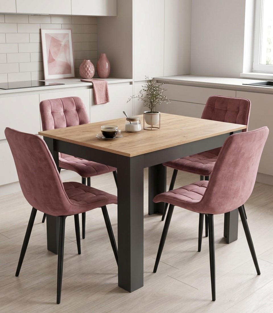 Krzesło SPLIT - aksamit róż ciemny / nogi czarne x 1