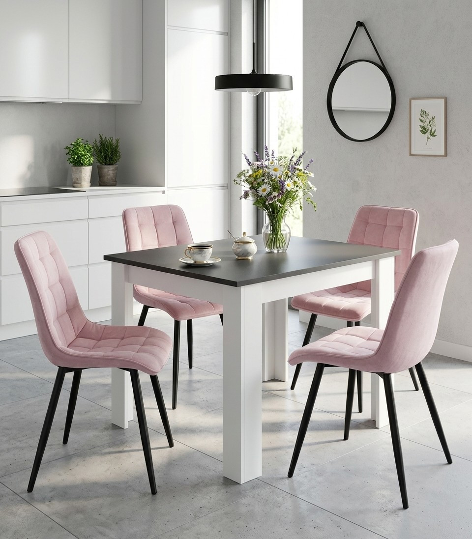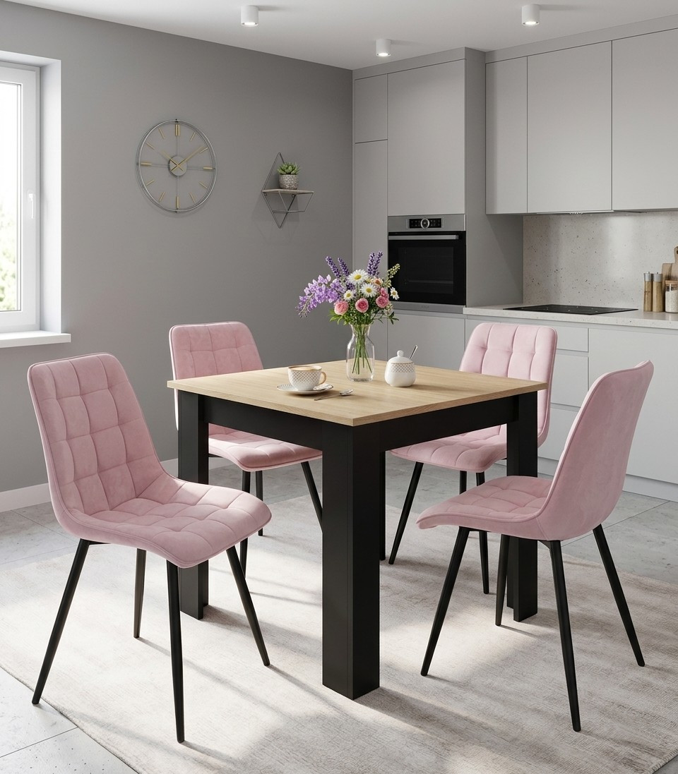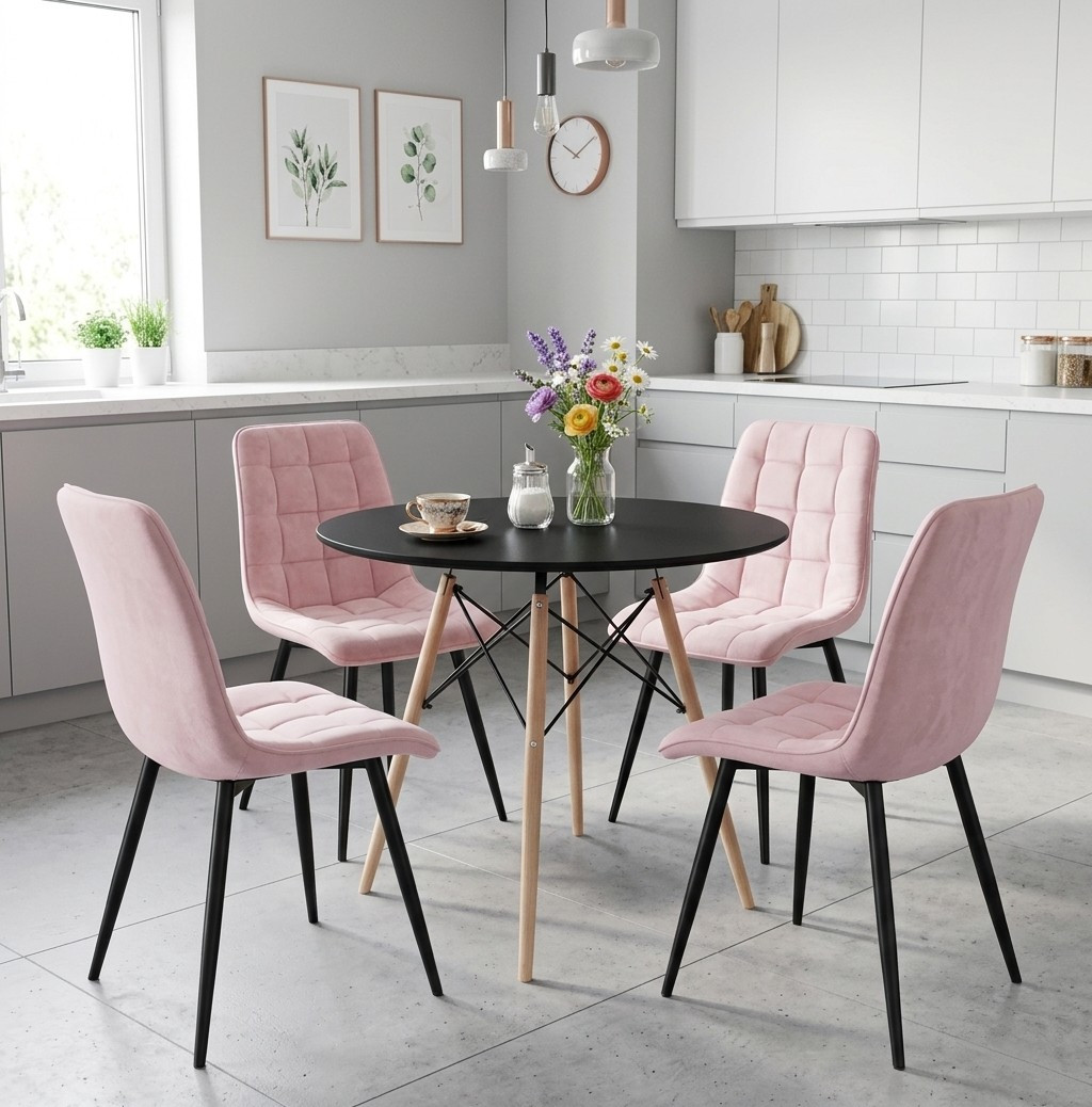 Krzesło SPLIT - aksamit róż jasny / nogi czarne x 1