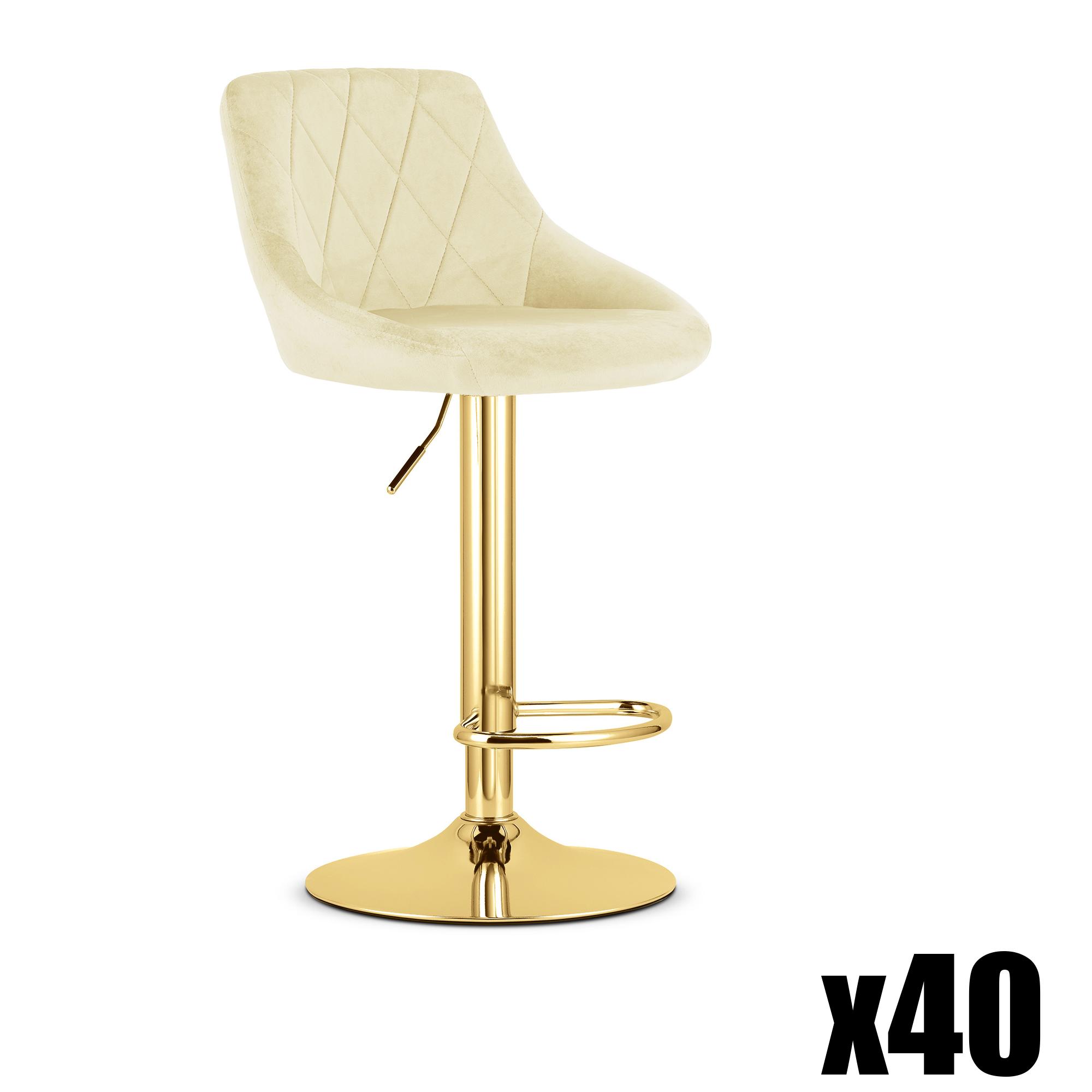 Oferujemy gotową paletę 120 x 100 cm, 312 kg, zawierającą 40 sztuk hokerów KAST - jasny beż aksamit / baza złota.