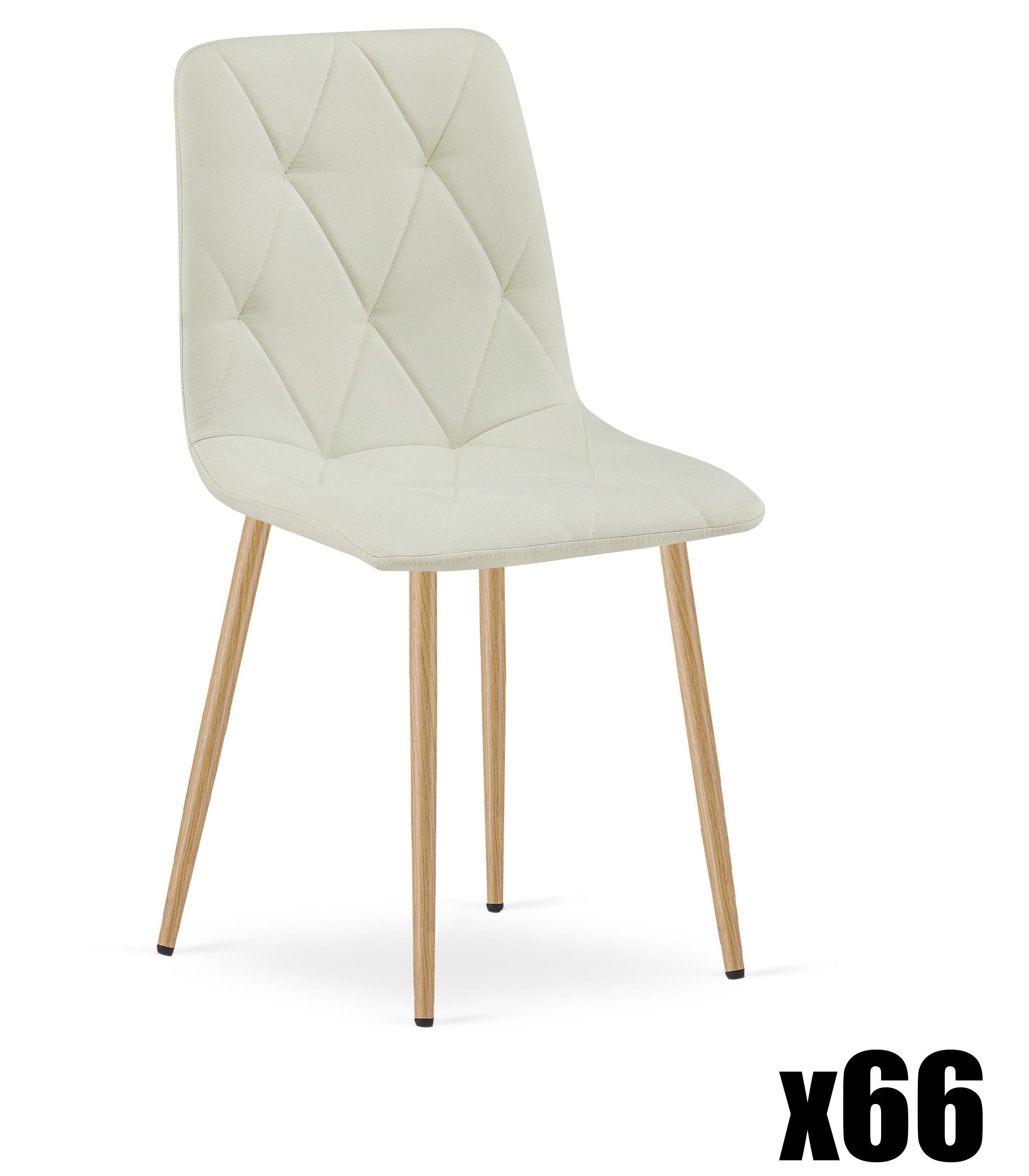 Oferujemy gotową paletę 120 x 100 x 220 cm, 297,2 kg, zawierającą 66 sztuk krzeseł LIBRA - beż materiał / nogi kolor drewna.