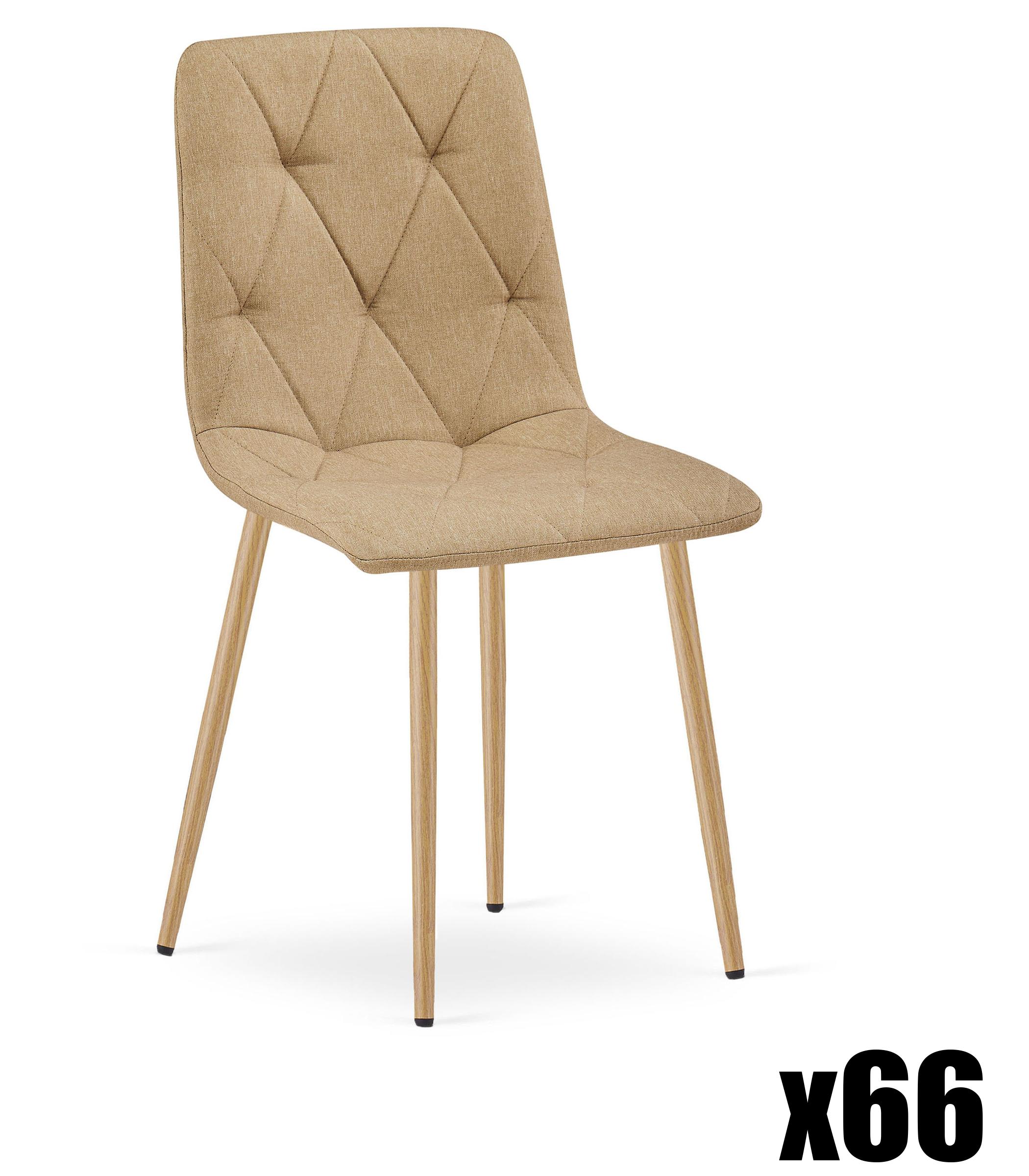 Oferujemy gotową paletę 120 x 100 x 220 cm, 297,2 kg, zawierającą 66 sztuk krzeseł LIBRA - brąz materiał / nogi kolor drewna.