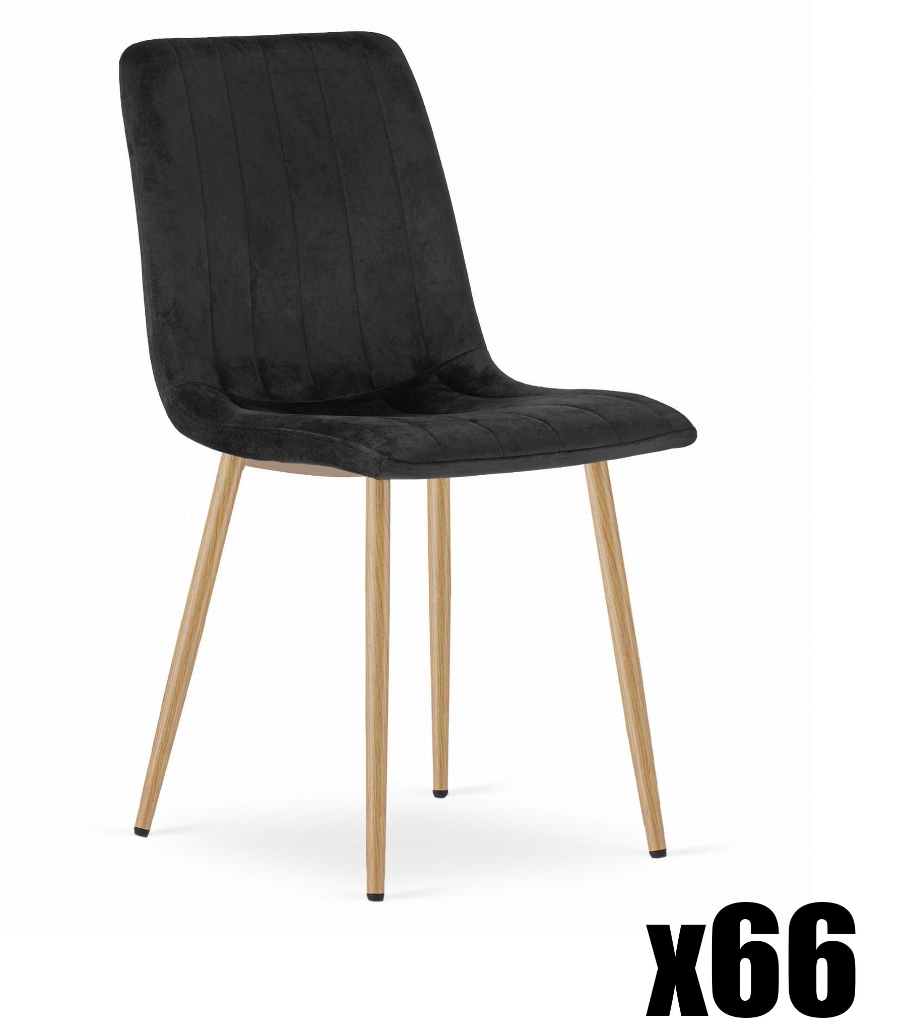 Oferujemy gotową paletę 120 x 100 297,2 kg, zawierającą 66 sztuk krzeseł Krzesło LAVA - czarny aksamit / nogi kolor drewna.